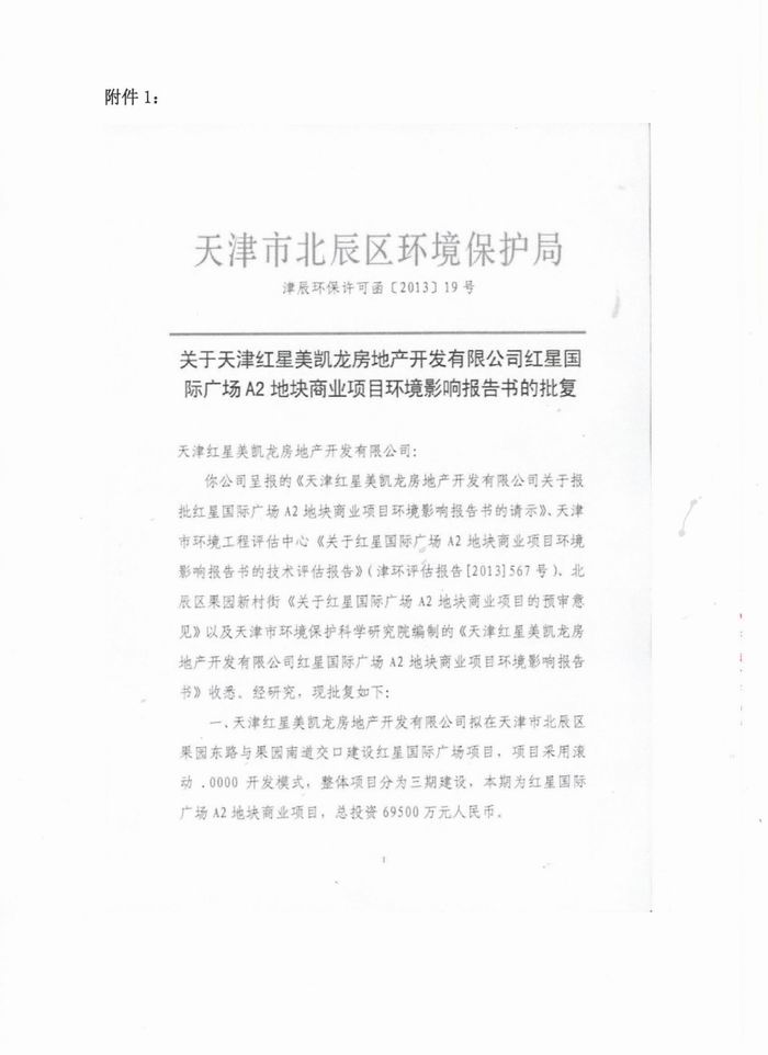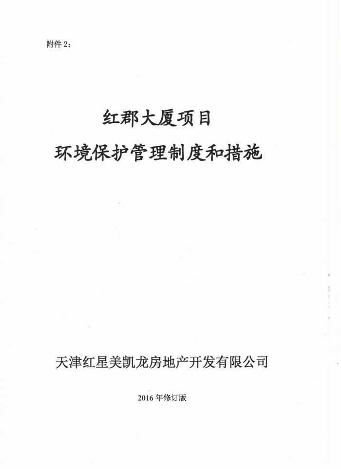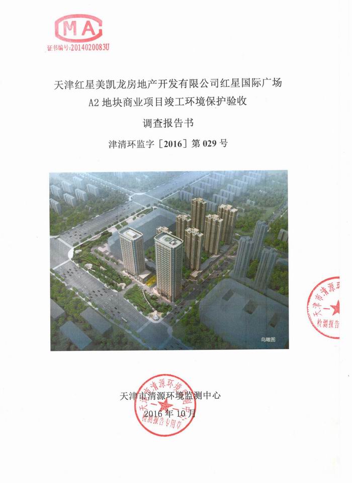 • 关于《天津红星国际广场A2地块商业项目竣工环境保护验收调查报告书》的公示