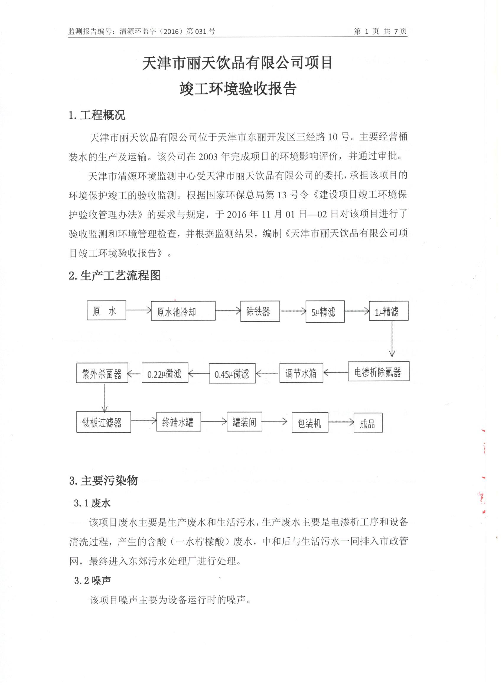 关于《天津市丽天饮品有限公司桶装水项目》的公示