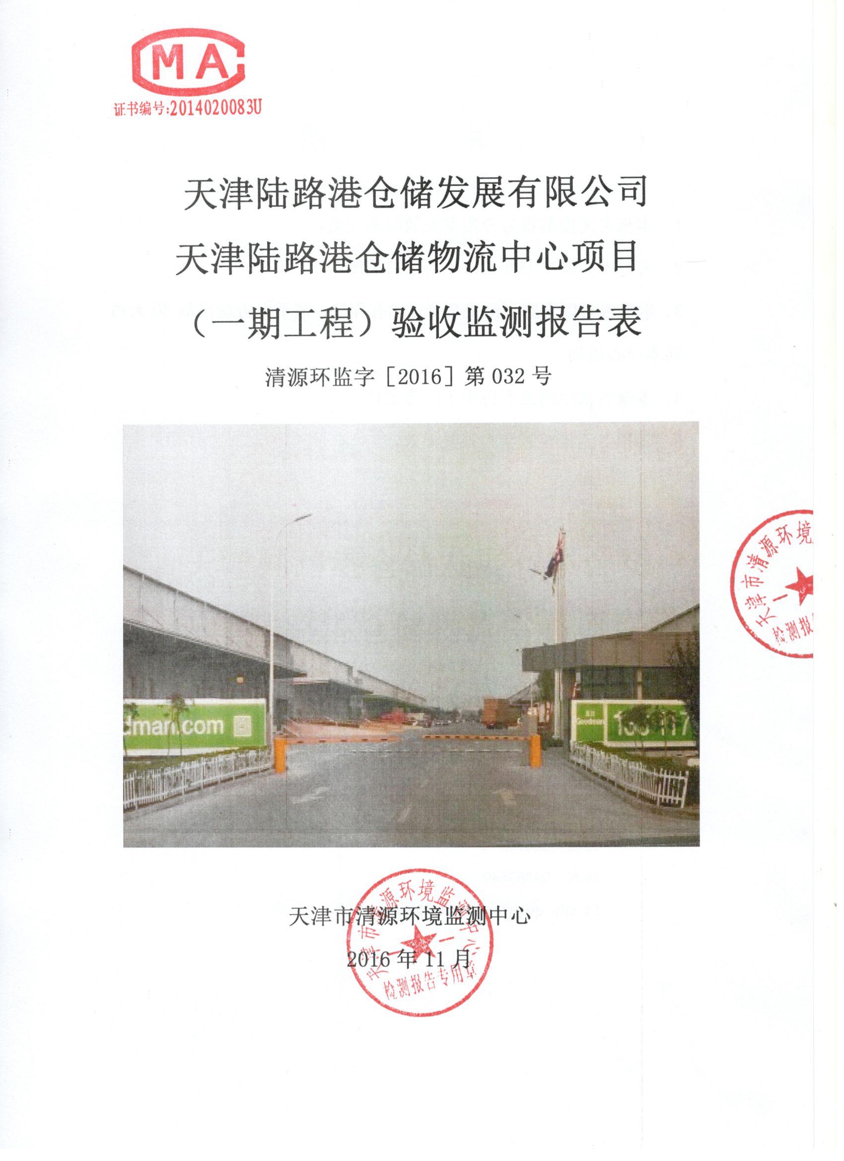 关于《天津陆路港仓储发展有限公司天津陆路港仓储物流中心项目(一期工程)验收监测报告表》的公示