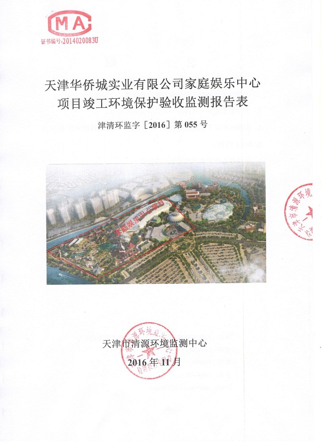 关于《天津华侨城实业有限公司家庭娱乐中心项目竣工环境保护验收监测报告表》的公示