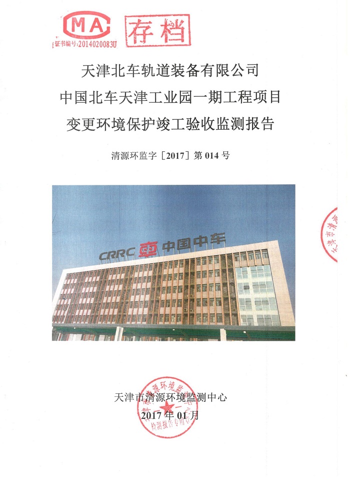 关于《天津北车轨道装备有限公司中国北车天津工业园一期工程项目变更环境保护竣工验收监测报告》的公示