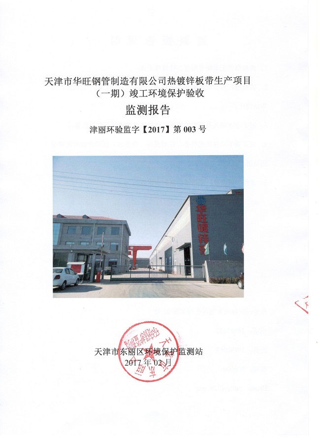 关于《天津市华旺钢管制造有限公司热镀锌板带生产(一期)项目竣工环境保护验收监测报告》的公示