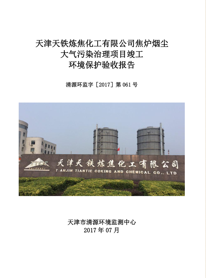 关于对《天津天铁炼焦化工有限公司焦炉烟尘大气污染治理项目验收监测报告表》的公示