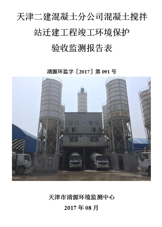关于天津二建混凝土分公司混凝土搅拌站迁建工程竣工环境保护验收监测报告的公示