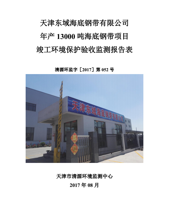 关于天津东域海底钢带有限公司年产13000吨海底钢带项目的公示