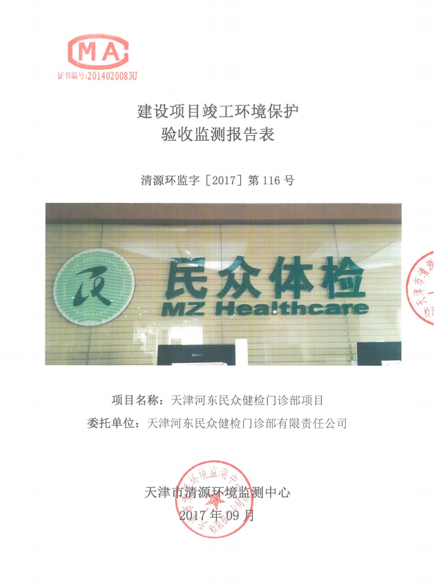 关于对天津河东民众健检门诊部项目建设项目竣工环境保护验收监测报告表的公示