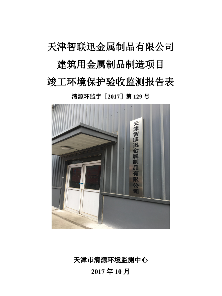 关于天津智联迅金属制品有限公司建筑用金属制品制造项目的公示