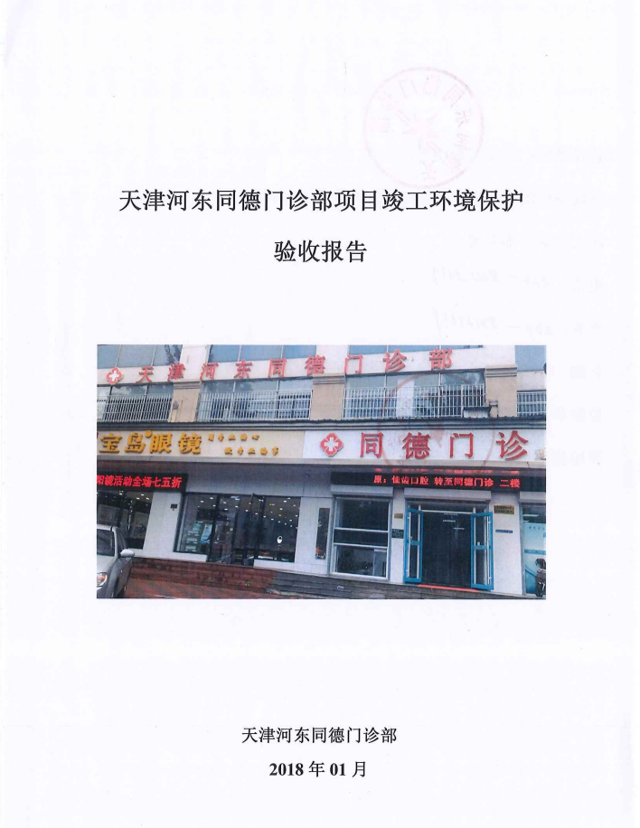 关于天津河东同德门诊部项目竣工环境保护验收的公示