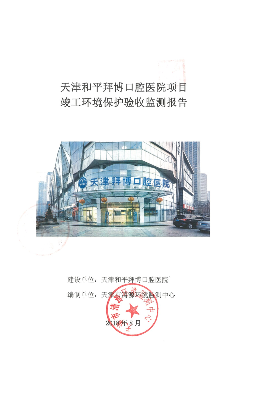 关于对天津和平拜博口腔医院项目竣工环境保护验收监测报告