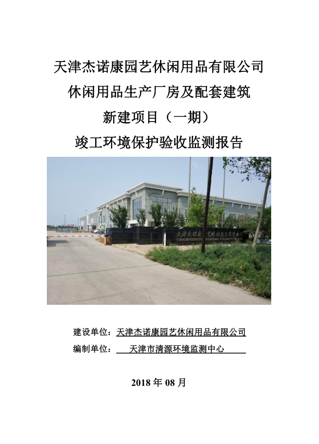 关于天津杰诺康园艺休闲用品有限公司休闲用品生产厂房及配套建筑新建项目(一期)的公示