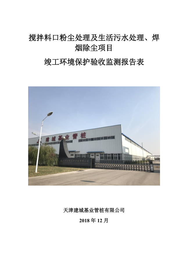 关于天津建城基业管桩有限公司搅拌料口粉尘处理及生活污水处理、焊烟除尘项目竣工环境保护验收的公示