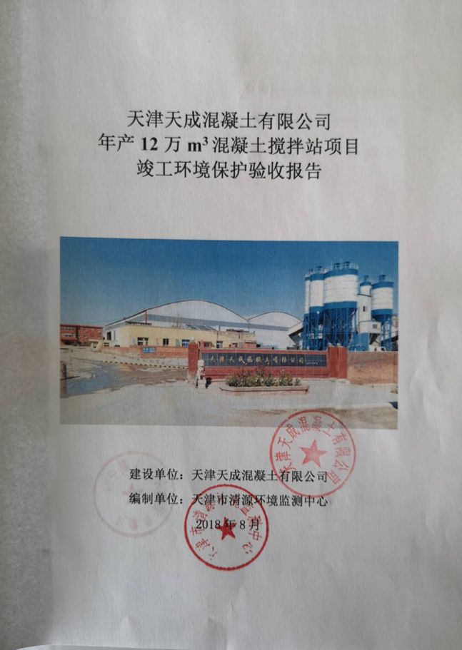 关于天津天成混凝土有限公司年产12万m3混凝土搅拌站项目竣工环境保护验收报告的公示