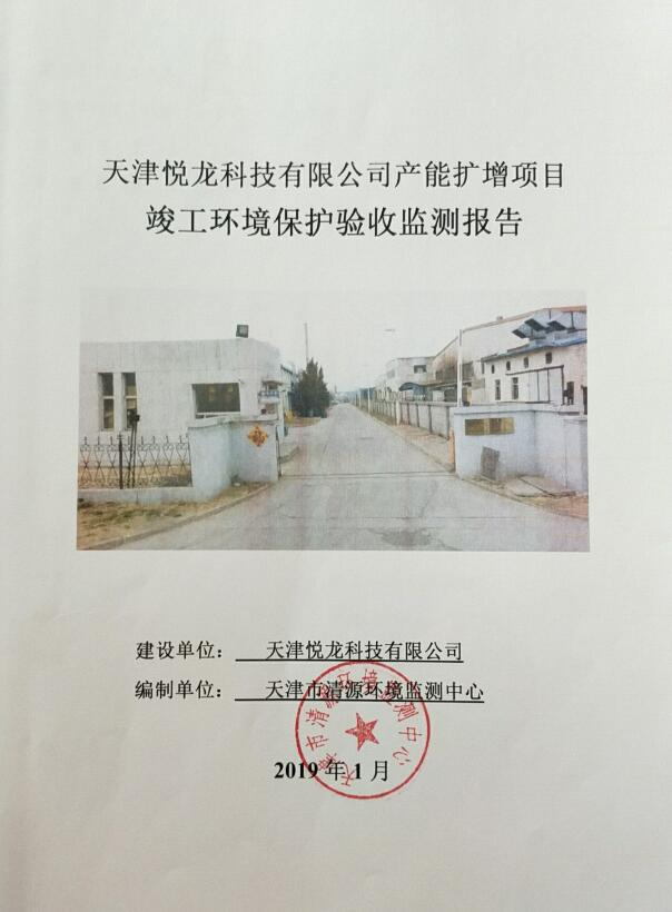 关于天津悦龙科技有限公司产能扩增项目竣工环境保护验收监测报告的公示