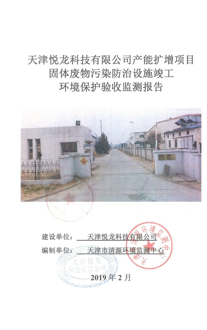 关于天津悦龙科技有限公司产能扩增项目固体废物污染防治设施竣工环境保护验收监测报告的公示