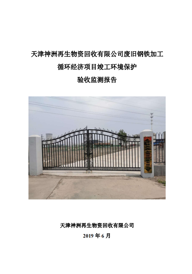 关于天津神洲再生物资回收有限公司废旧钢铁加工循环经济项目竣工环境保护验收监测报告的公示