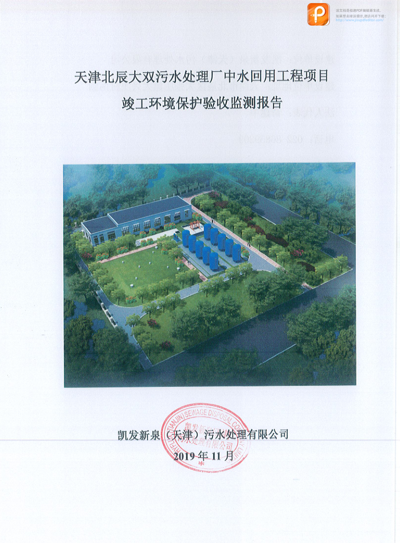 关于天津北辰大双污水处理厂中水回用工程项目竣工环境保护验收监测报告的公示
