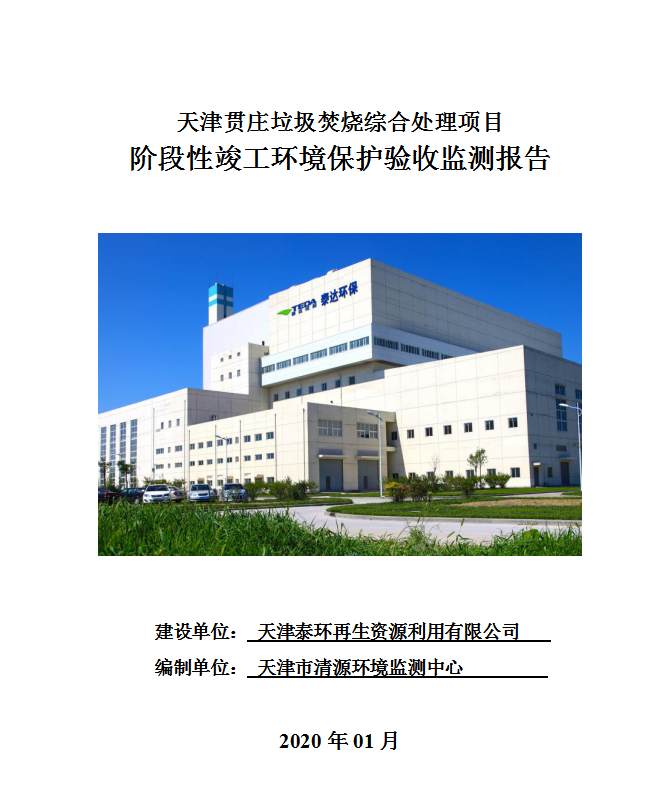 关于天津贯庄垃圾焚烧综合处理项目阶段性竣工环境保护验收监测报告的公示