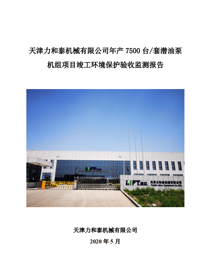 关于天津力和泰机械有限公司年产7500台套潜油泵机组项目竣工环境保护验收监测报告的公示