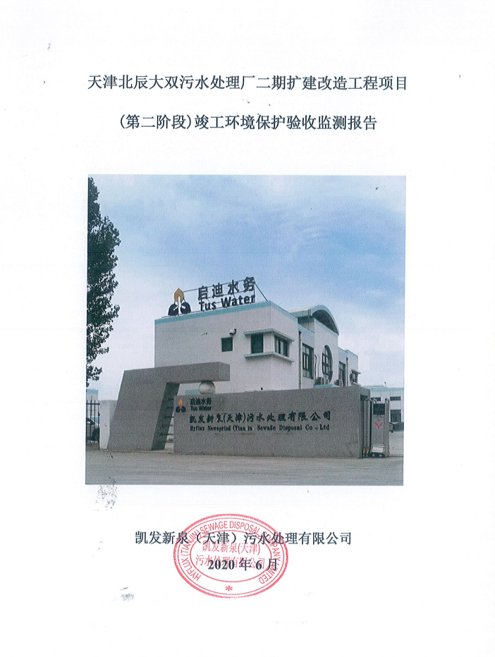 关于天津北辰大双污水处理厂二期扩建改造工程项目(第二阶段)竣工环境保护验收监测报告的公示