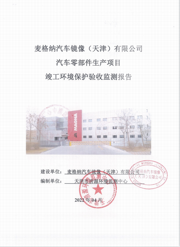 关于麦格纳汽车镜像(天津)有限公司汽车零部件生产项目竣工环境保护验收的公示