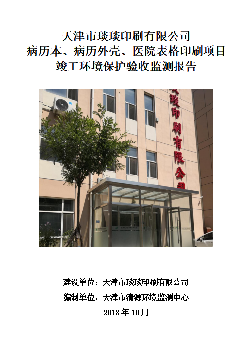 关于天津市琰琰印刷有限公司病历本、病历外壳、医院表格印刷项目竣工环境保护验收监测报告的公示