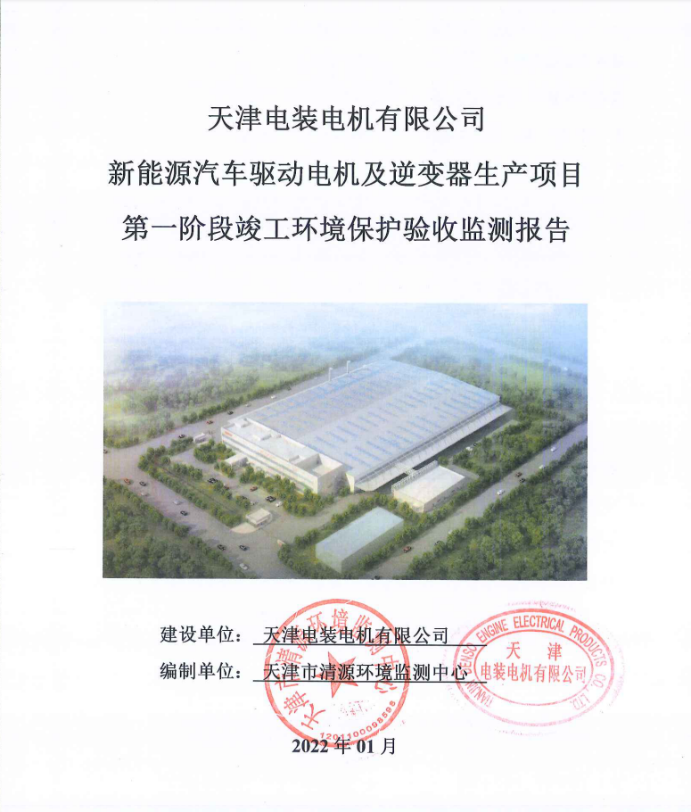 关于天津电装电机有限公司新能源汽车驱动电机及逆变器生产项目第一阶段竣工环境保护验收监测报告的公示