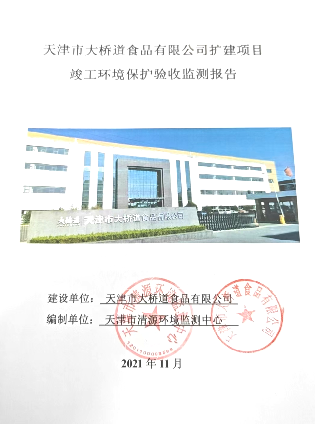 关于天津市大桥道食品有限公司扩建项目竣工环境保护验收监测报告的公示