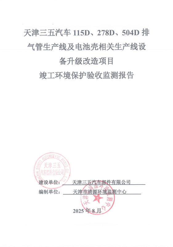 关于天津三五汽车排气管生产线及电池壳相关生产线设备升级改造项目验收报告的公示